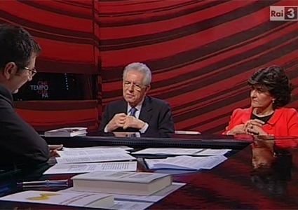 MONTI-BIS?: «DECIDE IL COLLE». «Rifletterò su tutte le possibilità, nessuna esclusa, in cui io evenualmente, ritenga di dare il mio contributo al miglior interesse dell'Italia e qualunque decisione sarà inevitabilmente mia, ma mi affiderò molto alle valutazione e a ciò che il Capo dello Stato avrà da dire in generale ed a me in particolare». Così il premier Mario Monti al programma "Che Tempo Che Fa" su Rai 3 rispondendo alle domande di Fabio Fazio sulla possibilità di tornare a palazzo Chigi dopo le elezioni.