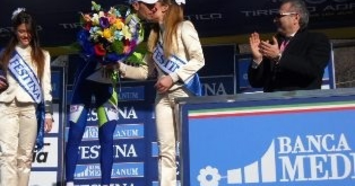Il corridore della Liquidigas Cannondale è primo all'arrivo ai Prati di Tivo: 196Km alla velocità media di 33,9 Km/h