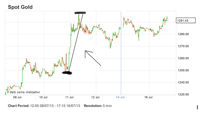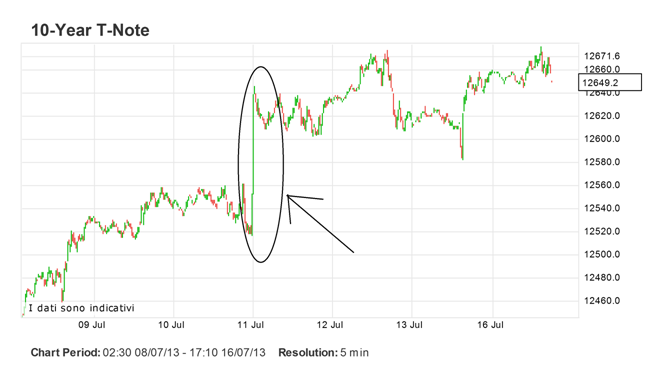 DON’T FIGHT THE FED. Non andare mai contro la Fed dice un famoso detto americano. Parte la stagionalità delle trimestrali in America ma non fanno notizia e passano in secondo piano. Ormai è chiaro, il market mover dei prossimi mesi è la Fed e le sue scelte riguardanti l’exit strategy. La scorsa settimana il presidente della Banca Centrale Bernanke ha fatto un passo indietro e nelle minute ha ribadito in maniera “accentuata” che il piano di acquisto di titoli continuerà ( 85 miliardi di dollari al mese ). Rimarcando inoltre, che i dati su economia e occupazione rimangono deboli, e che la Federal Reserve rimarrà orientata a mantenere i tassi prossimi allo zero per un tempo considerevole. Sembra che metà dei membri del Fomc ( il braccio operativo della Fed ) ritiene opportuno iniziare a ridurre gli acquisti di titoli entro fine anno mentre solo un paio sono quelli che vorrebbero porre termine al QE fin da subito. Saranno fondamentali le parole usate da Bernanke nelle prossime settimane; anzi già subito, questa settimana, quando si presenterà in senato. Quello che dirà e come verrà detto. E’ bastato quindi poco a far di nuovo reagire positivamente i mercati, basta vedere la reazione intraday il 10 luglio ( giorno delle minute ) su equity, gold e treasury americani.