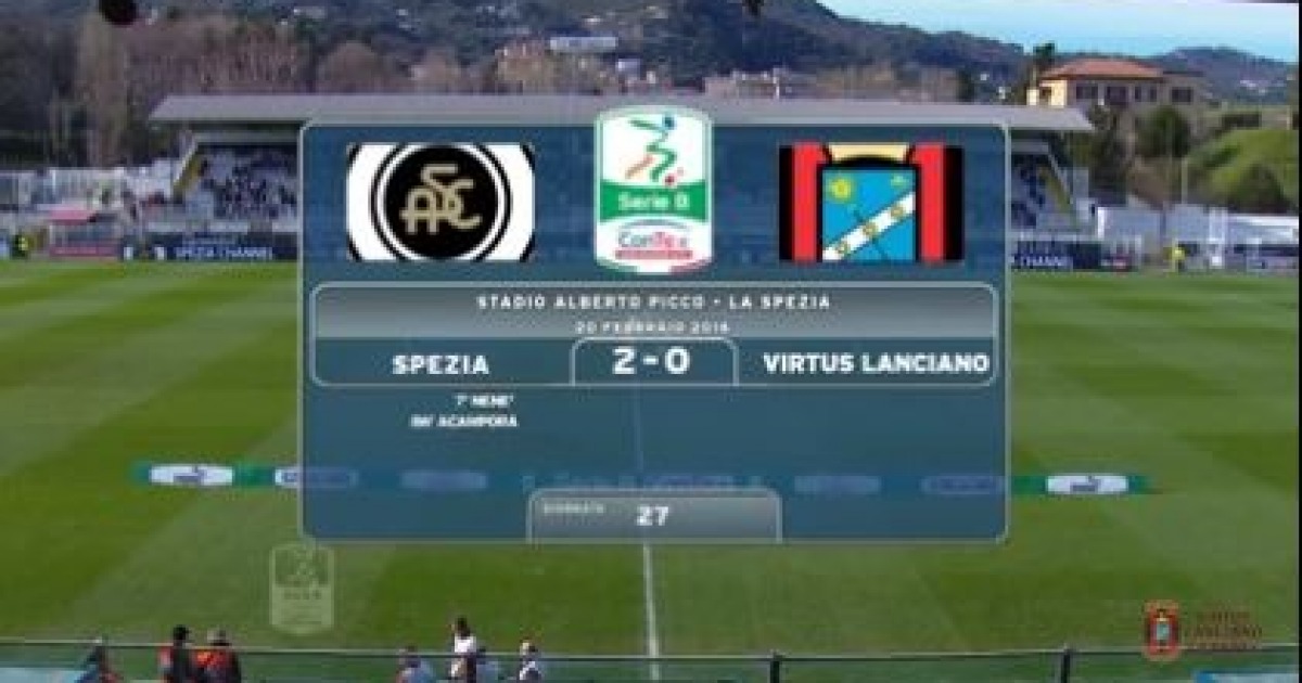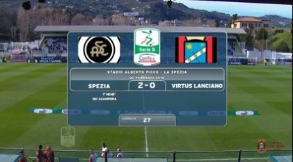 PRIMO TEMPO. Inizia ben la Virtus con Ferrari che dopo aver rubato palla aTerzi affronta a tu per tu Chichizola ma non riesce a superarlo. Al 7° Spezia passa in vantaggio con una inzuccata di Nenè servito da un cross di Migliore. Gli spezzini spingono sull'acceleratore con l'ex del Lanciano Piccolo il cui tiro viene murato da Amenta e al 19° con Sciaudone che conclude di poco fuori. Al 33° è ancora Amenta ad annullare Valentini pescato con un calcio da fermo in buona posizione dentro l'area frentana. Al 35° l'estremo difensore ligure interviene su un pericoloso traverso di Di Francesco. Al 39° Nenè colpisce la traversa di testa in seguito agli sviluppi di un calcio d'angolo.