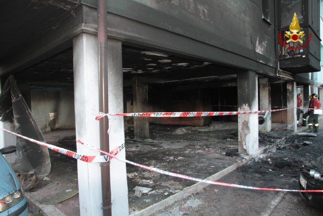 Distrutte alcune auto e moto parcheggiate sotto al porticato di uno stabile, Alcuni bambini ed anziani sono stati portati in ospedale con sintomi di intossicazione