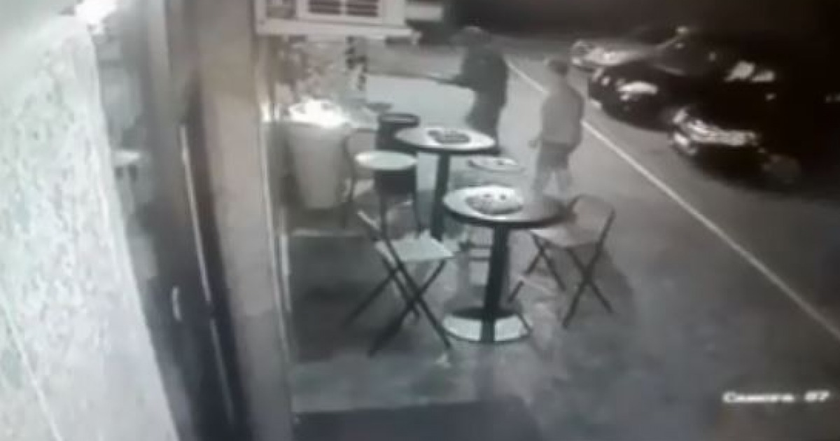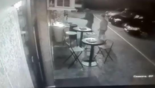 Foto: una immagine dell'assassino mentre entra nel locale Birrami a Montesilvano con l'arma del delitto.