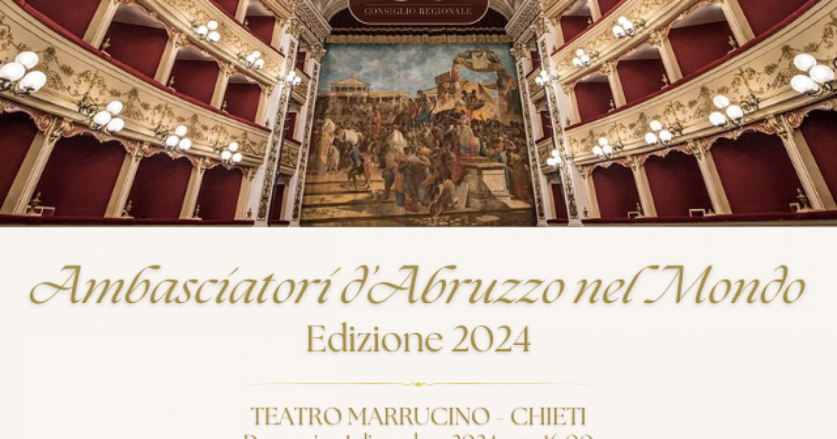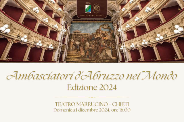 L’evento di investitura degli Ambasciatori d’Abruzzo è previsto per domenica 1 dicembre al Teatro Marrucino di Chieti. La cerimonia, con inizio alle ore 16, vedrà la presenza dei Consiglieri regionali, delle autorità politiche e religiose del territorio, dei rappresentati del CRAM (Consiglio Regionale degli Abruzzesi nel Mondo). La manifestazione è organizzata in collaborazione con il Conservatorio Statale di Musica “Gaetano Braga”di Teramo, che dalle ore 18.30, sempre al Marrucino, presenterà la prima nazionale dell’opera lirica in un atto, “John Fante - come siamo diventati, il suo paese”, con le musiche di Antonio Cericola su sceneggiatura di Miloje Popovic.