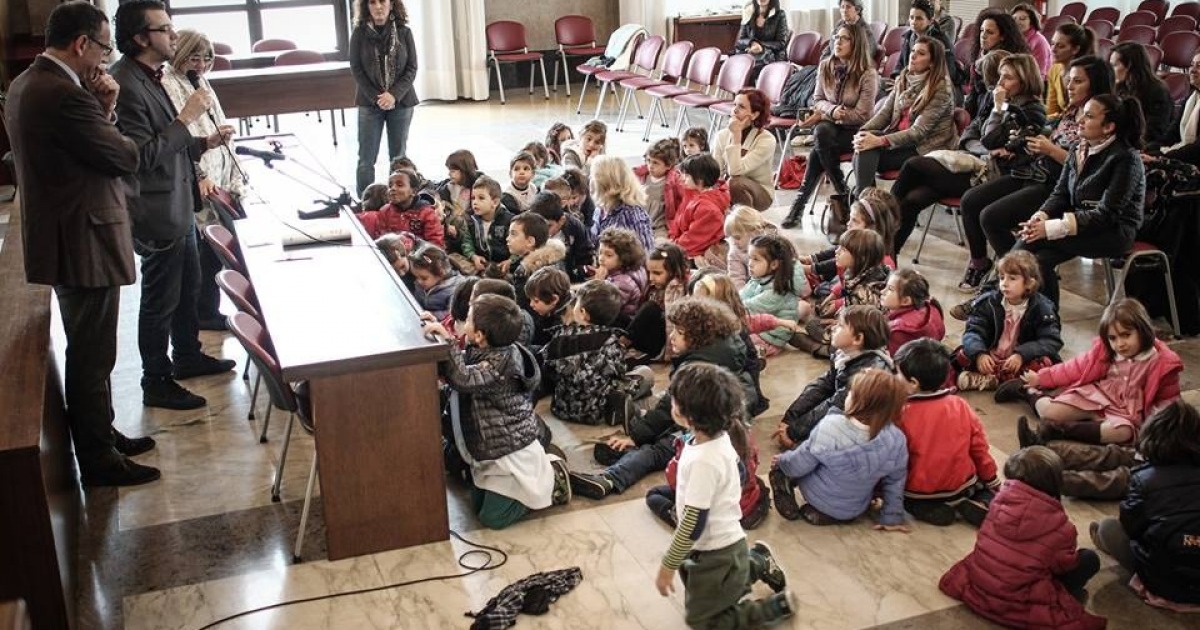 PESCARA, UNA VISITA IN COMUNE. Sensibilizzare i bambini alla lettura, sin dalla tenera età, equivale a formare un cittadino con una piena consapevolezza di sé, in grado di esprimere la propria opinione in maniera critica accettando il punto di vista dell’altro. All'insegna di queste convinzioni, ieri i bambini della scuola dell'infanzia di via del Concilio, a Pescara, sono stati in visita presso il Comune. Ad accoglierli, il sindaco Marco Alessandrini e l'assessore alla pubblica istruzione Giovanni Di Iacovo.