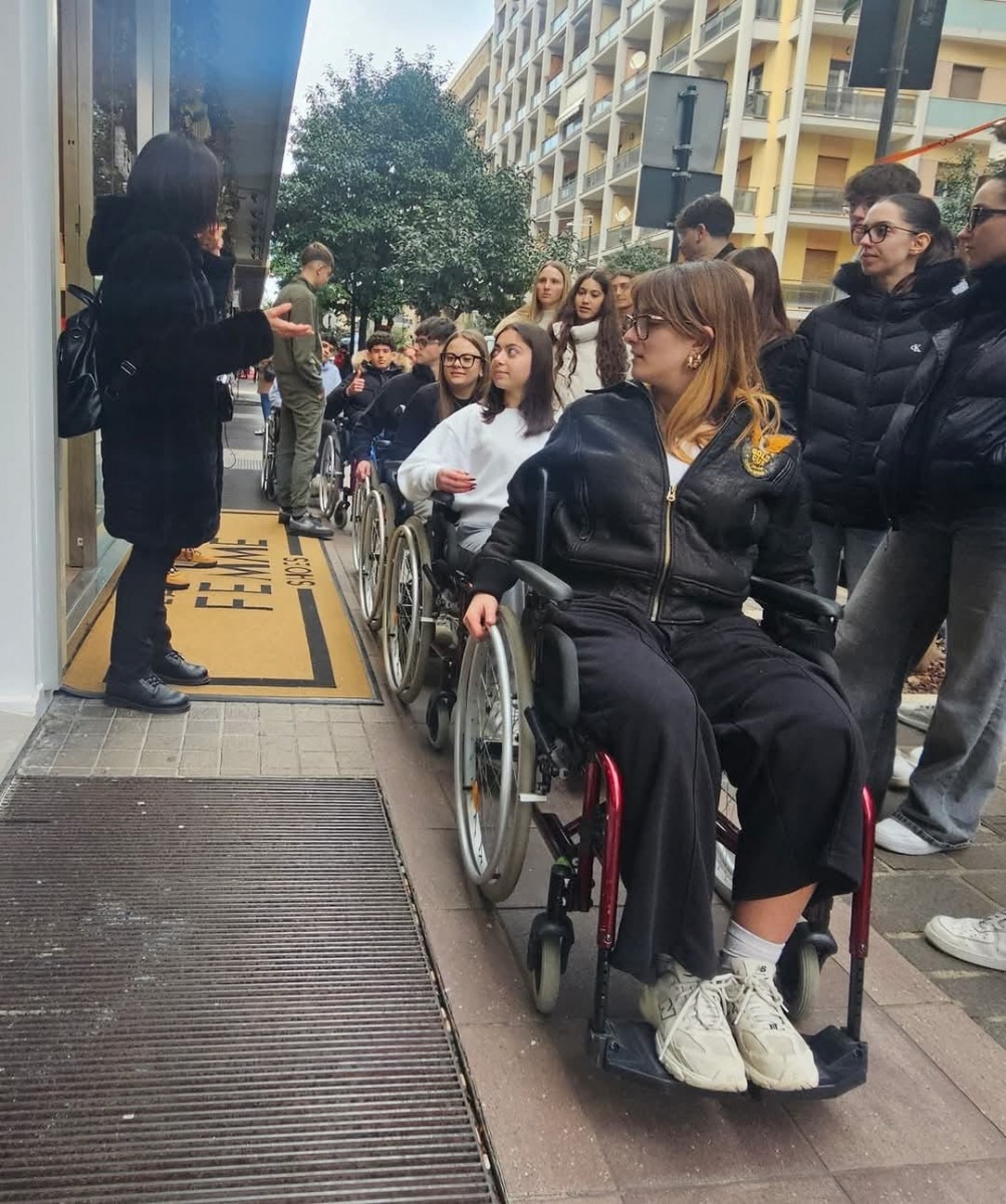 “Quella che doveva essere una passeggiata per sensibilizzarci è diventata una lezione di vita, ogni spinta delle ruote ogni ostacolo ogni sguardo curioso o indifferente delle persone mi ha fatto sentire una realtà che prima avevo solo immaginato, senza mai comprenderla fino in fondo. A proposito di negozi qui a Pescara nei dintorni della scuola, nessuno è norma, sembra come se dicano “non sei il benvenuto qui”, forse non è un messaggio intenzionale ma il risultato è lo stesso. Non si tratta solo di comodità ma di dignità basterebbe uno scivolo costruito nel rispetto della legge! Questa esperienza mi ha lasciato un misto di sconforto e rabbia, perché ho capito quanto siamo lontani dall’essere una società inclusiva e perché molte di queste barriere potrebbero essere eliminate con poco sforzo solo se ci fosse la volontà.”, sono invece le parole chiare e decise di Francesco della classe III sezione E.
