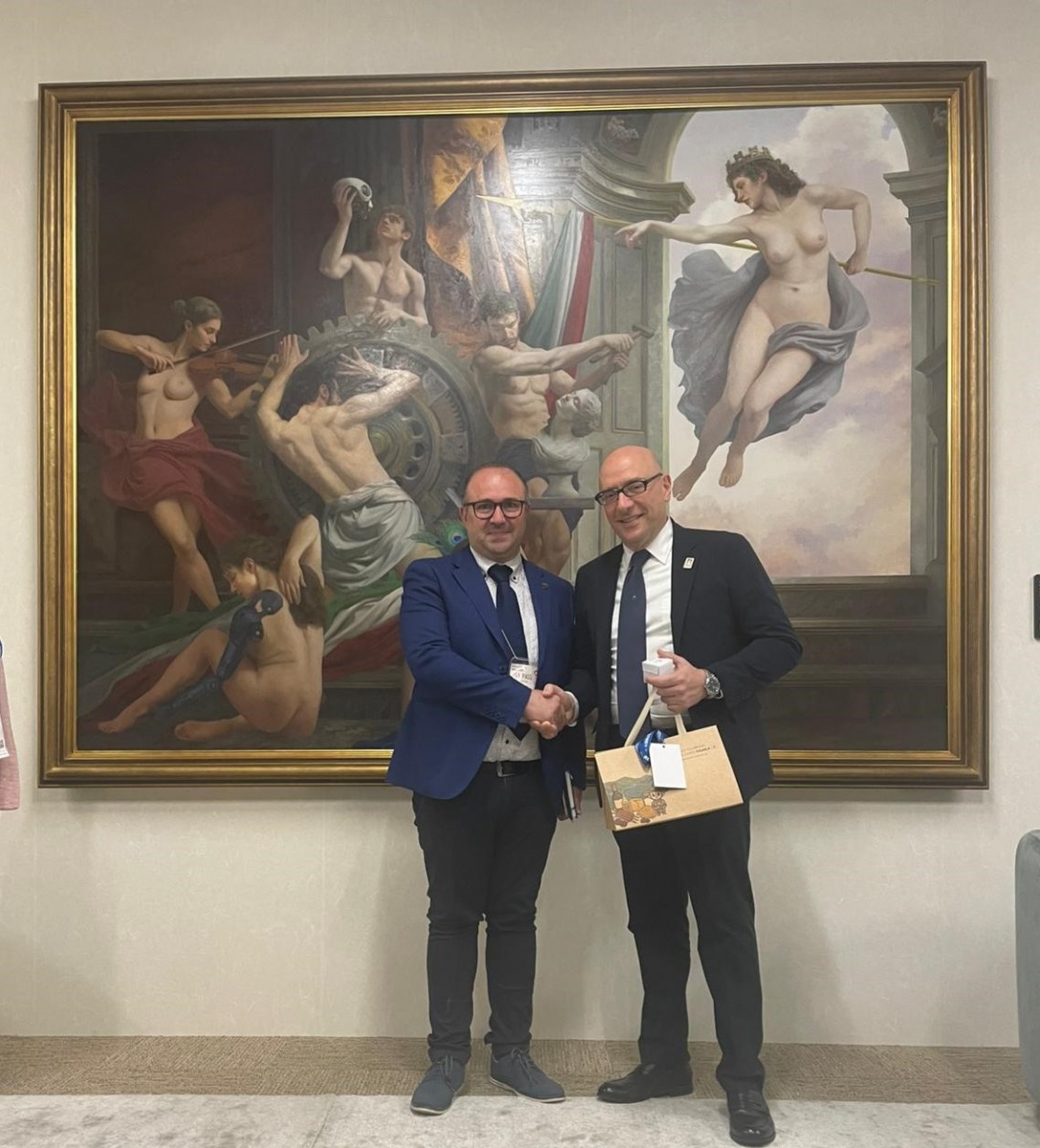 Il primo tema, quello della biodiversità, è stato affidato agli interventi dell’enologo Camillo Zulli, dal funzionario regionale Tito Cieri, dall’ambientalista Giuseppe Di Marco e dal presidente e maestro pasticciere Anzellotti. Per il turismo sono intervenuti l’avvocato Cinzia Luciani, il sottosegretario alla presidenza della Giunta regionale con delega al Turismo Daniele D’Amario e Carlo Tereo, dirigente regionale del settore Turismo. Infine, per la sessione cultura e formazione, spazio all’ITS Academy Agroalimentare di Teramo con la presidente Enrica Salvatore e il professor Lorenzo Spinosi, e la direttrice del Museo delle Ceramiche di Castelli, Paola Di Felice. A rendere ancora più coinvolgente gli incontri, anche la proiezione di video emozionali relativi alle realtà turistiche ed imprenditoriali abruzzesi. Inoltre, sei aziende (Cantina biodinamica Orsogna, Pasta Zaccagni, D’Alessandro confetture, pasticceria Emozioni Italiane, Apicoltura Luca Finocchio, Tindora Cosmetics con le sue creme corpo a base di zafferano), in rappresentanza delle filiere dell’agroalimentare abruzzese, hanno contribuito alla preparazione di una confezione regalo per tutti gli intervenuti. Un cadeau particolarmente apprezzato che è stato donato anche all’ambasciatore Mario Vattani, commissario generale per l’Italia a Expo Osaka presente al convegno, nel corso di un incontro privato avvenuto con il maestro Anzellotti durante il quale l’ambasciatore si è complimentato per il meeting, tessendo le lodi delle peculiarità abruzzesi.