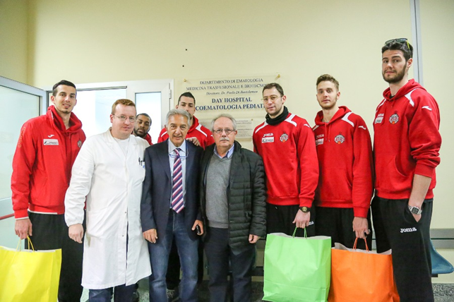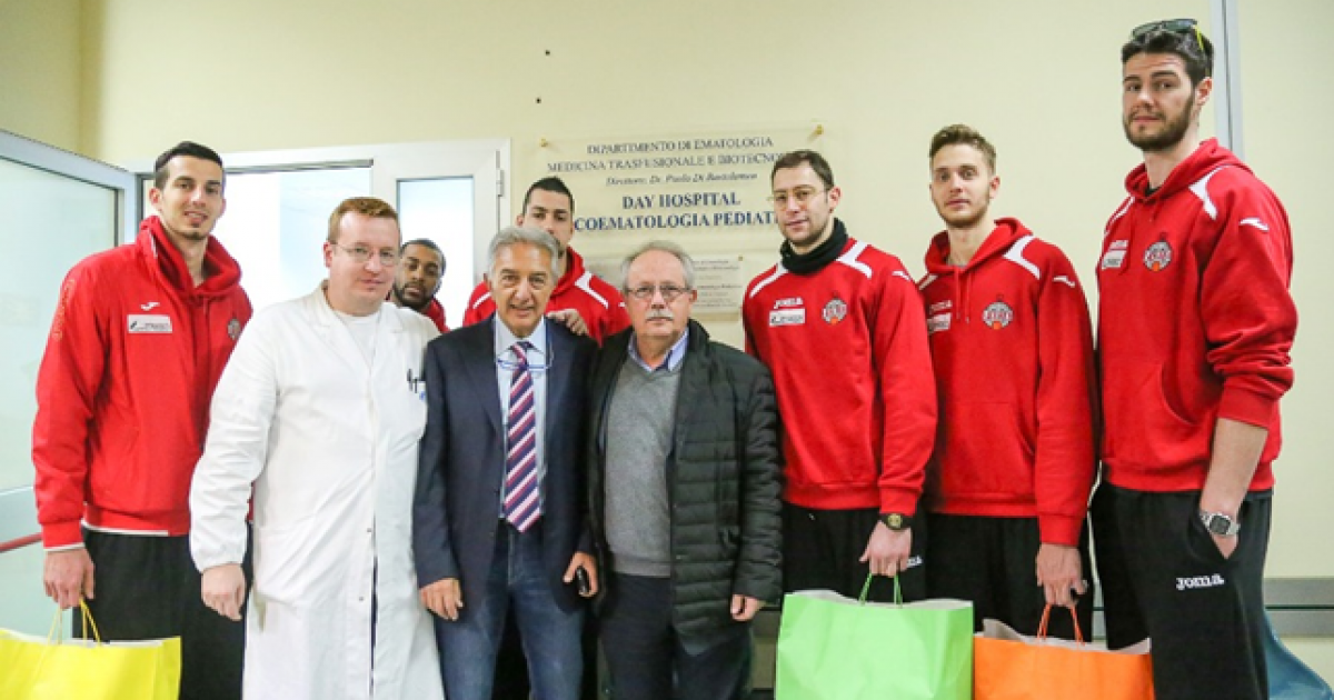I giocatori della Proger Chieti in visita all'ospedale di Pescara. Donati ai piccoli pazienti i Teddy Bear Toss