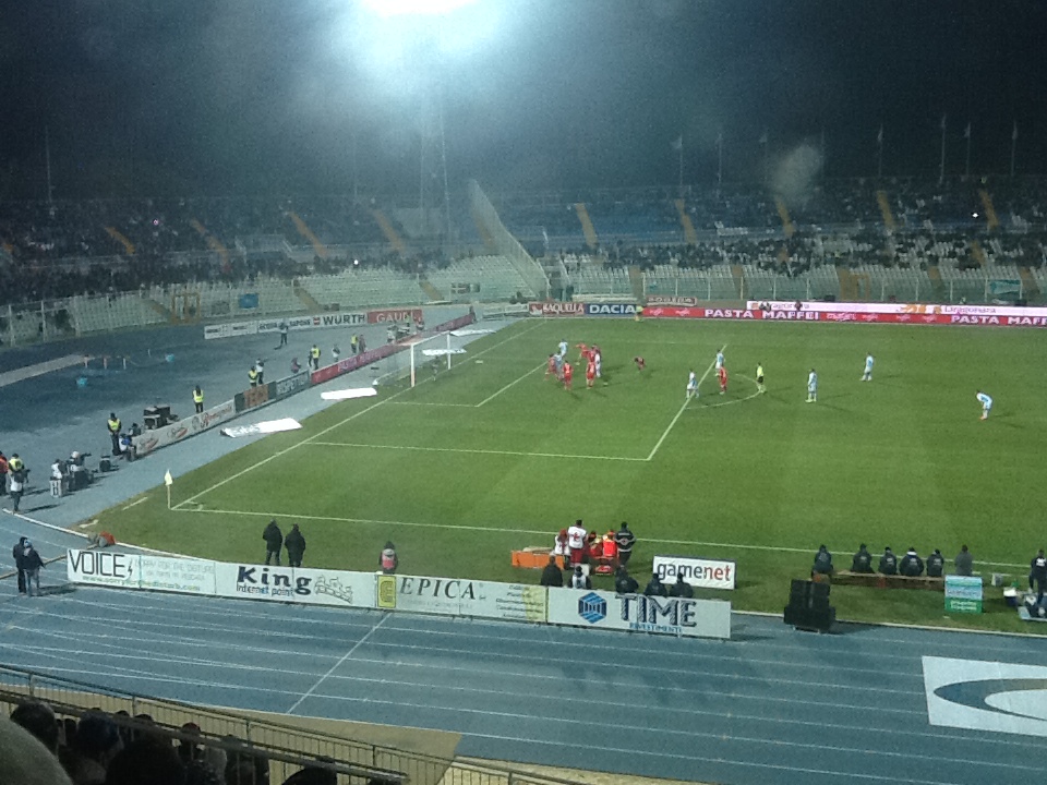 44'. Punizione da 30 metri per il Pescara. Palla altissima sopra la traversa di Mazzoni