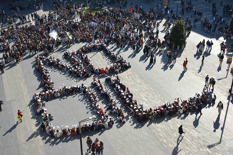 A PESCARA COMPARE UNA GRANDE SCRITTA: NO OIL. "NO OIL": centinaia di persone con i propri corpi hanno composto a Piazza Salotto a Pescara un grande slogan per esprimere il dissenso verso il Decreto "Sporca Italia" del Governo Renzi che promuove anche in Abruzzo la petrolizzazione del mare Adriatico.