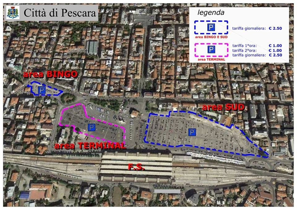 E' LA SOLITA STORIA. Cambiano le tariffe per i parcheggi nell'area di risulta della stazione di Pescara. Le novita' (in vigore dal 7 febbraio) sono state annunciate oggi dal vicesindaco Enzo Del Vecchio, che ha parlato della situazione difficile che sta affrontando 'Pescara Parcheggi', che gestisce i posti auto, e della volonta' del Comune di cambiare rotta per far tornare la societa' in utile. La delibera della giunta Mascia portava la sosta a 1 euro per 90 minuti, più 1 euro per i 60 minuti successivi e a 1,50 euro l’intera giornata. Ora, invece, succederà questo: sull’area terminal (a ridosso della stazione bus) si pagherà 1 euro la prima ora, 1 euro la seconda ora e 2,50 euro per la tariffa giornaliera, mentre sull’area sud (retrostante il dopolavoro Ferroviario) e l’area Bingo (nella parte nord dell’area di risulta) si potrà sostare solo per l’intera giornata a 2,50 euro. Ciò vuol dire che chi parcheggerà in queste zone anche per pochi minuti sarà comunque tenuto a pagare la cifra piena. E' facile fare i conti: ci sarà un aumento delle tariffe pari al 250%. Ma bravi, complimentoni!