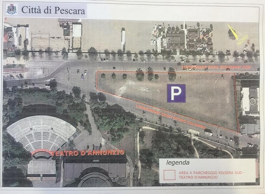 PESCARA, SOSTA A PAGAMENTO DAVANTI AL TEATRO D'ANNUNZIO. Il Comune di Pescara affronta l'emergenza parcheggi sul lungomare autorizzando la sosta a pagamento nell'area verde, di proprietà del Comune, davanti al teatro D'Annunzio.