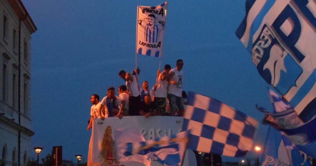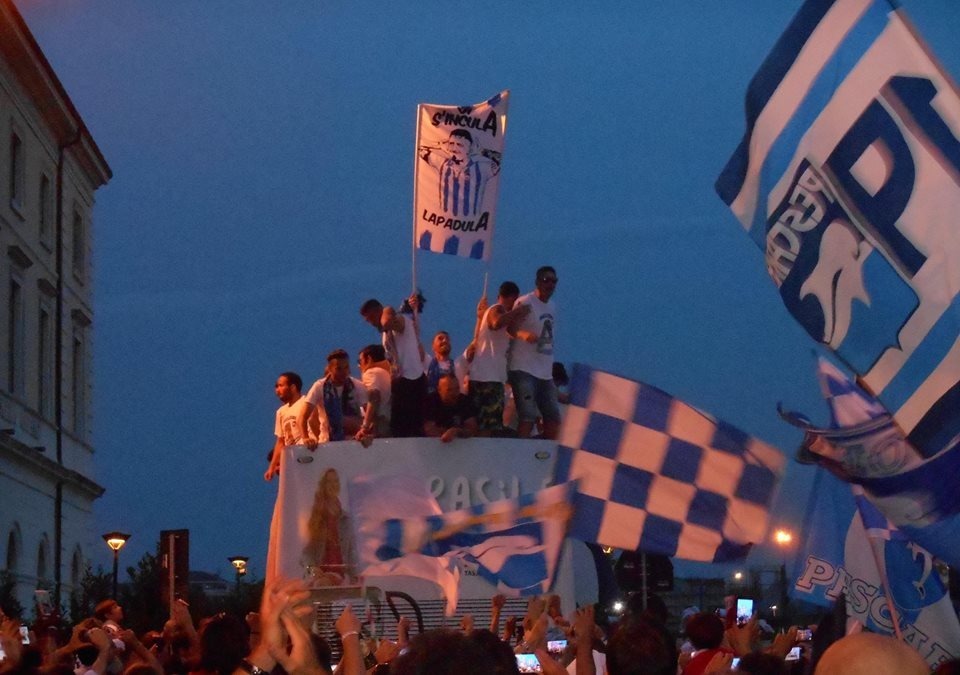 Nell'ambito della 'Notte biancazzurra', manifestazione organizzata dal Comune, c'è stato il saluto della squadra ai tifosi attraverso un giro attraverso la città su un autobus scoperto. Migliaia i tifosi che hanno tributato il meritato riconoscimento a Massimo Oddo e ai suoi ragazzi, premiati anche dall'Amministrazione.