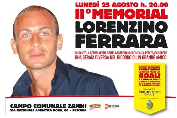 PESCARA RENDE OMAGGIO A LORENZO FERRARA. Si rinnova l'appuntamento con il memorial Lorenzo Ferrara, triangolare di calcio a 11 intitolato al giovane che nel novembre 2009 è stato stroncato da un tumore con cui stava combattendo da un anno e mezzo.