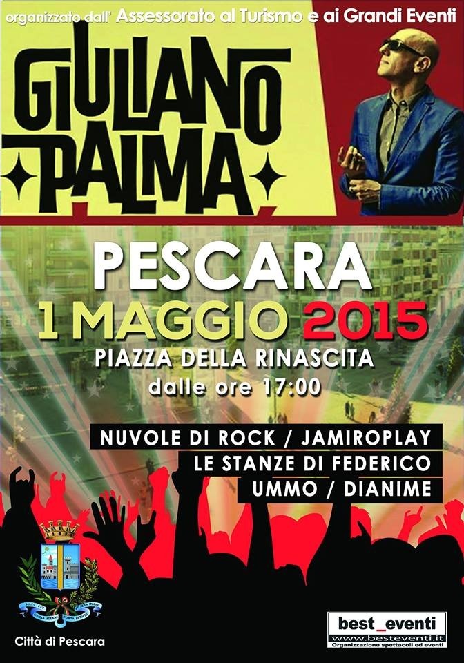 PRIMO MAGGIO PESCARESE CON GIULIANO PALMA. Si concluderà con l’esibizione di Giuliano Palma la Festa del Lavoro a Pescara. Il cantante dei Bluebeaters e dei Casino Royale si esibirà stasera in piazza Salotto alle 21, ma la giornata sarà accompagnata dallo spettacolo e dai temi del sociale e del lavoro, già dal pomeriggio. Alle 17 è infatti prevista l’esibizione di cinque band locali che faranno cover e pezzi propri.