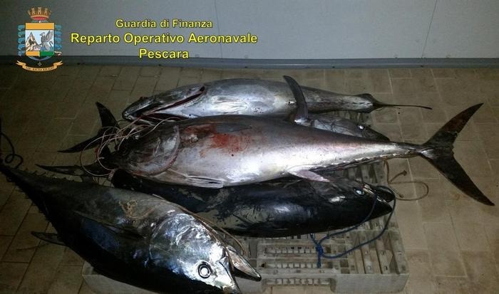 SEQUESTRATI I "TONNI ROSSI". Sequestrati tonni rossi pescati di frodo, trovati a bordo di un automezzo sul lungofiume di Pescara durante controlli dei militari della Stazione Navale della Guardia di Finanza di Pescara. Si tratta di cinque esemplari della specie "Thunnus thinnus", per un peso complessivo di circa 200 kg. Il prodotto ittico era sprovvisto di documentazione che ne attestasse la legittima provenienza. Alla persona che ne è stata trovata in possesso è stata applicata una sanzione pecuniaria di 4.000 euro. Il pescato, giudicato idoneo al consumo alimentare dal medico veterinario del Dipartimento Asl di Pescara, è stato devoluto in beneficenza a Enti caritatevoli.