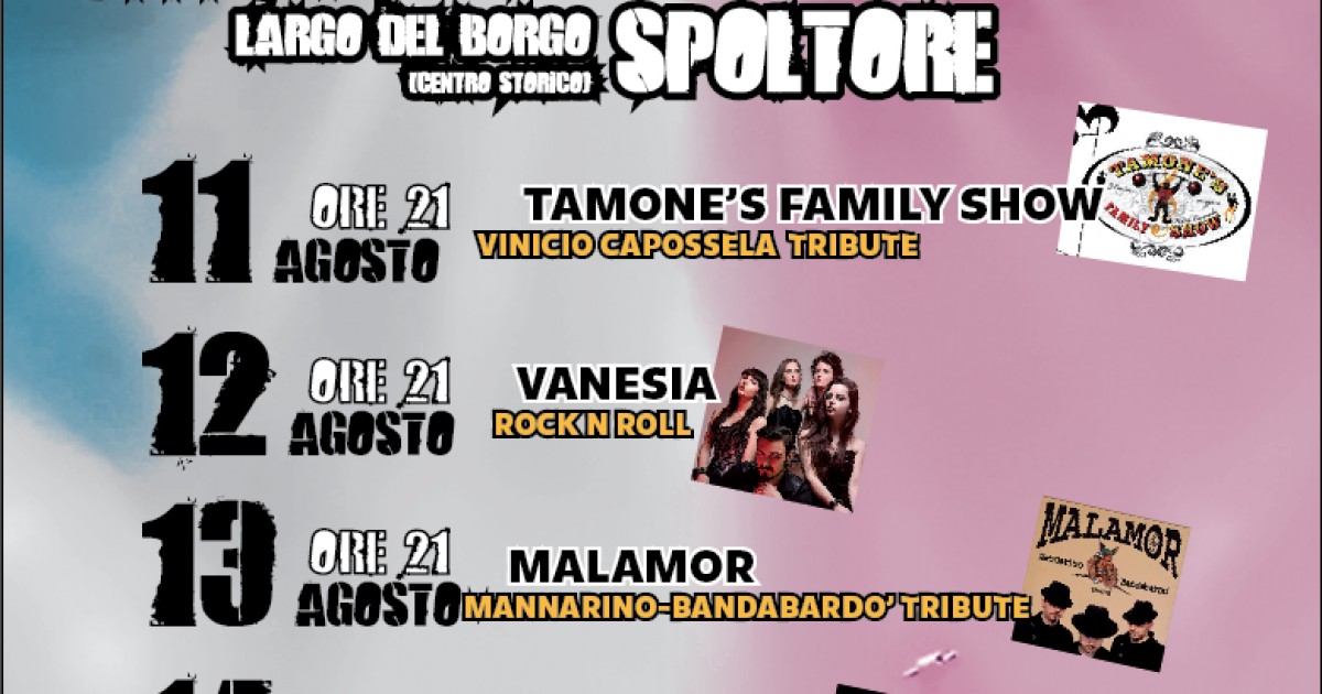PINTE DI BIRRA E NOTE ROCK RISCALDANO L’ESTATE SPOLTORESE. Dall’11 al 14 agosto 2016 si terrà la quarta edizione del Beer Rock Festival a Spoltore nella splendida cornice diLargo del Borgo sullo sfondo del bellissimo centro storico. Anche quest’anno saranno presenti le migliori tribute band locali. Ad aprire il festival i Tamone’s Family show con il tributo a Vinicio Capossela. Il 12 agosto si esibiranno un gruppo molto giovane ma con già tantissima esperienza alle spalle, i Vanesia le cui sonorità dei brani rispecchiano un rock intimo e personale, con una cornice melodica a tratti aggressiva, complici i ritornelli orecchiabili e le sfumature emotive del violino classico.Il 13 agosto salirà sul palco un trio acustico che propone brani reinterpretati di Mannarino & Bandabardò, fondendo lo spirito allegro e festaiolo ricco di magia con testi e note irriverenti tipici dello stornellatore di borgata. Il farsi cullare dalle melodie soavi e rime poetiche sarà solo l' anticamera del vero animo festaiolo dei "MALAMOR". La chiusura, il 14 agosto, sarà affidata ai Terza Corsia-Floyd On the Wing, con il tributo ai Pink Floyd. Riconosciuto dalla stampa e dall'opinione pubblica come una delle tribute band più fedeli d' Italia, ripercorreranno in due ore e un quarto di musica tutto il periodo Watersiano della band di Cambridge. Da Dark Side of the Moon a The Wall, da Animals a Wish You Were Here, da Meddle a A Sacerful Of Secrets (eseguita nella versione Live a Pompei). Tutte le sere saranno presenti gastronomici a cura della Pizzeria Zio Pepe, Li Beerbun, i Pasticcini di S.C. e Pausa Caffè, l’apertura sarà alle 19.30 mentre i live inizieranno alle 22.00 circa. L’evento è patrocinato dal Comune di Spoltore.