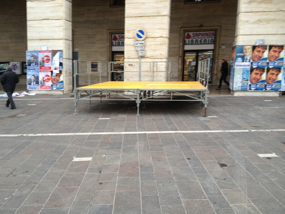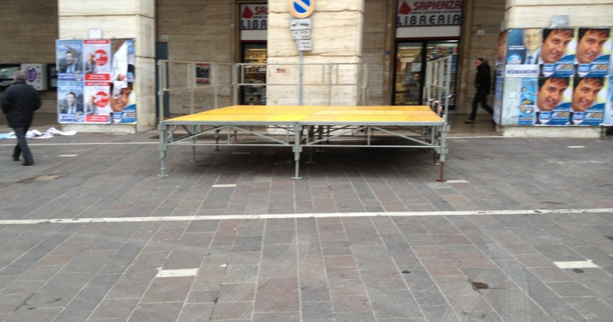 TERAMO. POLEMICA SUL MANCATO COMIZIO SEL. «Le dichiarazioni rilasciate da esponenti di SEL sulle presunte difficoltà accampate dal Comune per lo svolgimento del comizio elettorale programmato per ieri venerdi 22 febbraio, sono decisamente lontane dalla verità». Così in una nota il Comune di Teramo in risposta alle accuse dell'esponente di Sinistra, Ecologia e Libertà. «Infatti - aggiungono da Palazzo di Città - alla richiesta del partito di poter svolgere il comizio il Comune ha risposto approntando il palco (come si vede nella foto allegata) ma ricordando che, secondo quanto stabilito dal Regolamento, l’impianto di diffusione audio avrebbe dovuto essere predisposto dai richiedenti e non dall’ente. Pertanto, il Comune ha messo Sel in condizioni di dar vita all’appuntamento, tanto è che, a tal proposito, sono intercorsi anche contatti con la Polizia Municipale. E infatti, la decisione di non svolgere più il comizio, è stata comunicata proprio a quest’ultima, dapprima con una telefonata e poi, su esplicita richiesta del Vigile Lucia Ruggieri, tramite la mail».