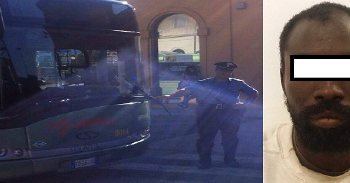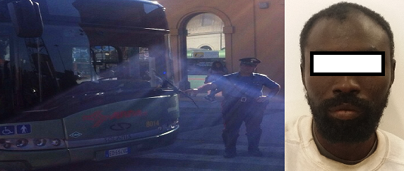 Sono stati i carabinieri del Comando Provinciale, in perlustrazione nella zona, ad ammanettarlo. Ma prima l'uomo aveva colpito con calci e pugni l'autobus mentre tentava di entrare dentro per aggredire il conducente che, nel frattempo, si era barricato all’interno per sfuggire all’aggressione.