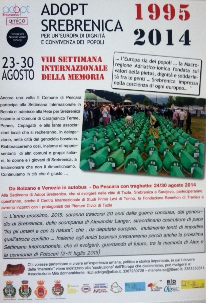 Progetto Adopt Srebrenica: il Comune di Pescara ci sarà