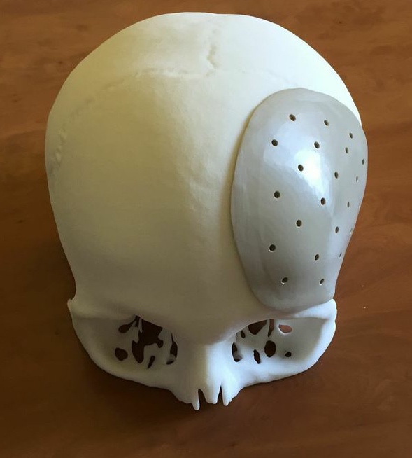 Protesi stampata in 3D per sostituire parte di scatola cranica