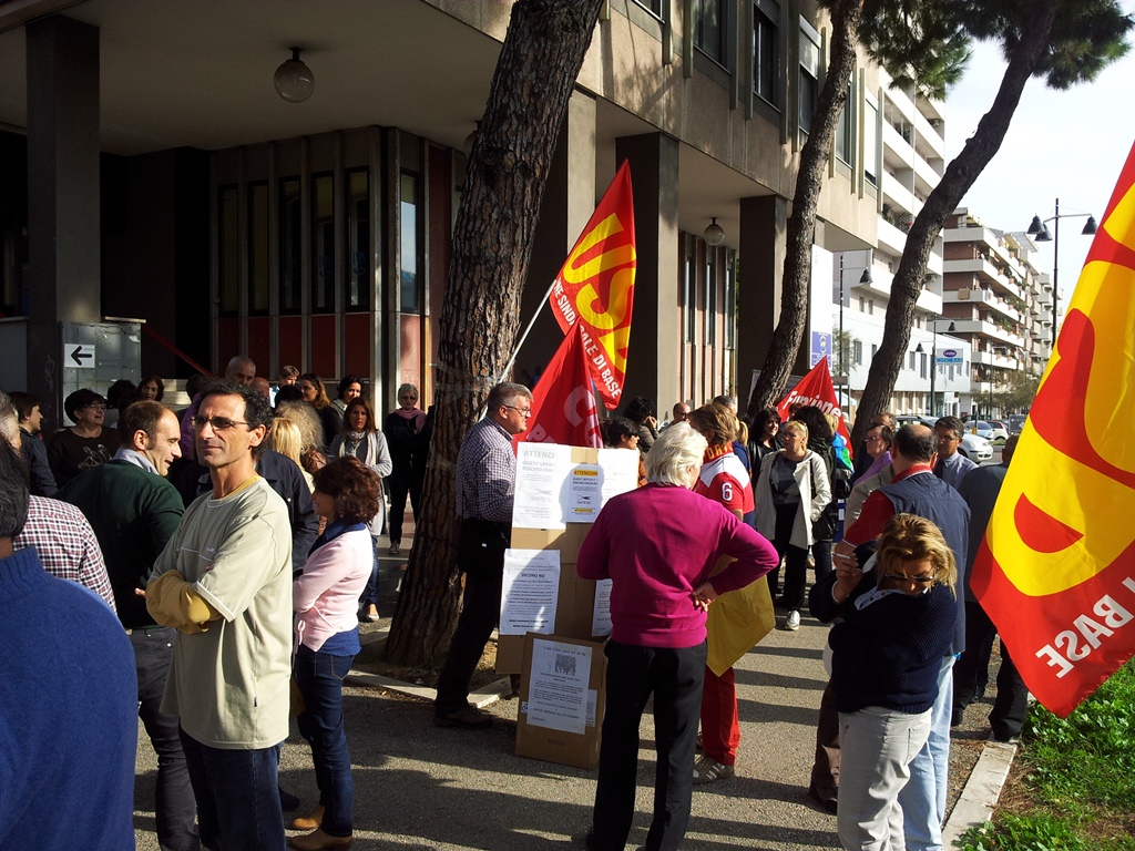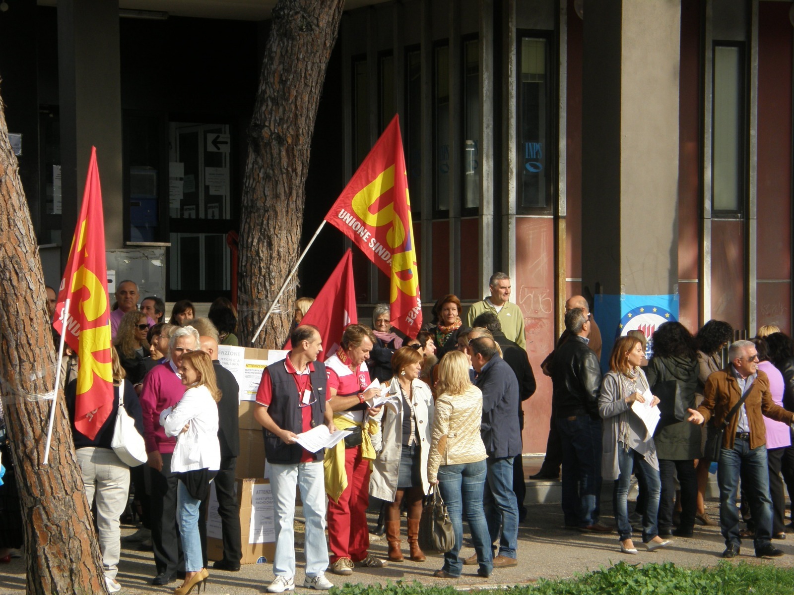 Pescara. I lavoratori davanti all'Inps contro l'approvazione del Ddl "Stabilità": «No alla decurtazione dello stipendio»