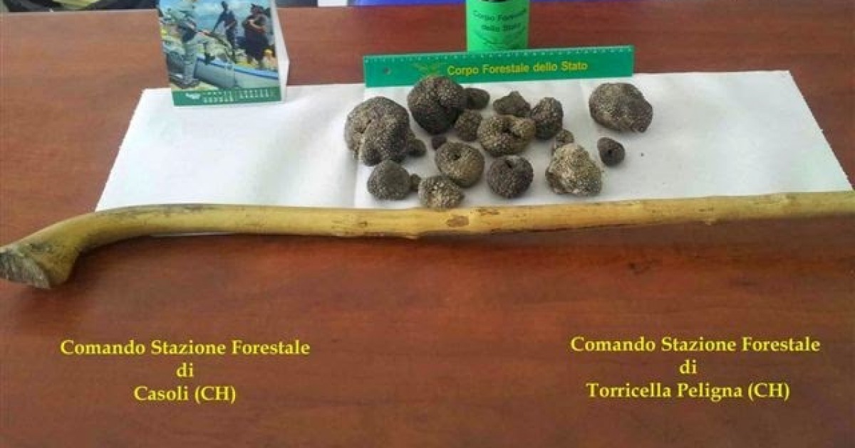 PENSIONATO SCORRETTO. Il Corpo Forestale dello Stato di Casoli e Torricella Peligna, dopo diversi appostamenti, ha sorpreso un pensionato della zona intento a cercare e raccogliere tartufi senza la prevista autorizzazione della Regione. Circa 700 grammi di tartufo estivo appena raccolto e un lungo bastone (utilizzato sempre nella raccolta) sono stati sequestrati. Fino a 1.200 euro la sanzione per l'infrazione contestata.