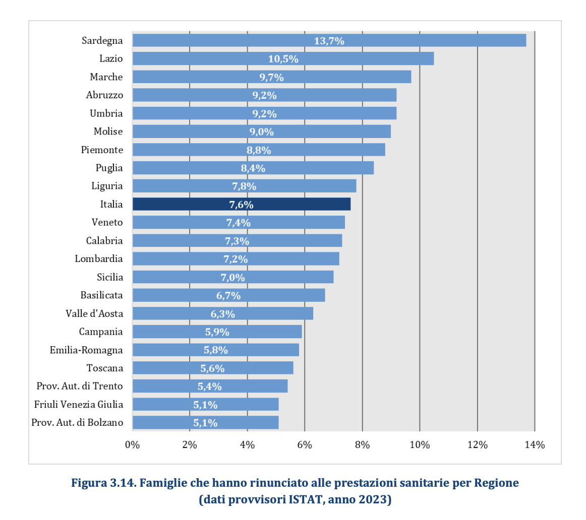 Rapporto ‘choc’ sulla sanità: 120mila abruzzesi rinunciano alle cure