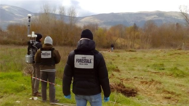 Grazie all’utilizzo del geomagnetometro gestito dal personale CFS in servizio presso il Nucleo Investigativo Centrale di Polizia Ambientale e Forestale (NICAF) - Laboratorio Mobile Unità di indagine e di repertazione scientifica - e alla preziosa collaborazione fornita dal personale dell’I.N.G.V., sono stati eseguiti puntuali sondaggi geologici nel terreno tali da far rinvenire circa 15.000 metri cubi di rifiuti di vario tipo, pericolosi e non, interrati ad una profondità di circa due metri, senza alcun criterio, costituiti da rifiuti dell’edilizia, rifiuti plastici e ferrosi, accumulatori di piombo e fusti contenenti liquido oleoso nero.