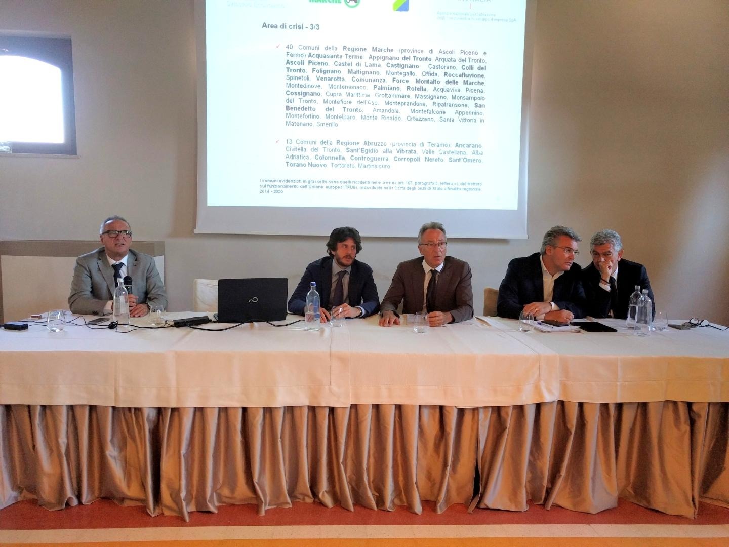 Il 14 ottobre scade la “call” di Invitalia per la manifestazione di interesse da parte di chi vuole investire nell’area (53 Comuni, 13 nel teramano): imprenditori locali ma anche provenienti dal resto dell’Italia e dall’estero. Insieme ai tecnici del Ministero, la Regione Abruzzo con il vicepresidente Giovanni Lolli che è entrato nel dettaglio dei bandi di competenza che si “integrano” con quelli nazionali perché possono finanziare progetti al di sotto del milione e mezzo. La Regione ha 23 milioni di euro – per tutto l’Abruzzo – e interverrà anche con strumenti cosiddetti in “de minimis” (finanziamenti fino a 200 milioni di euro) e con le agevolazioni al credito. Poi finanziamenti per “attività di ricerca” e “attività ambientale”.