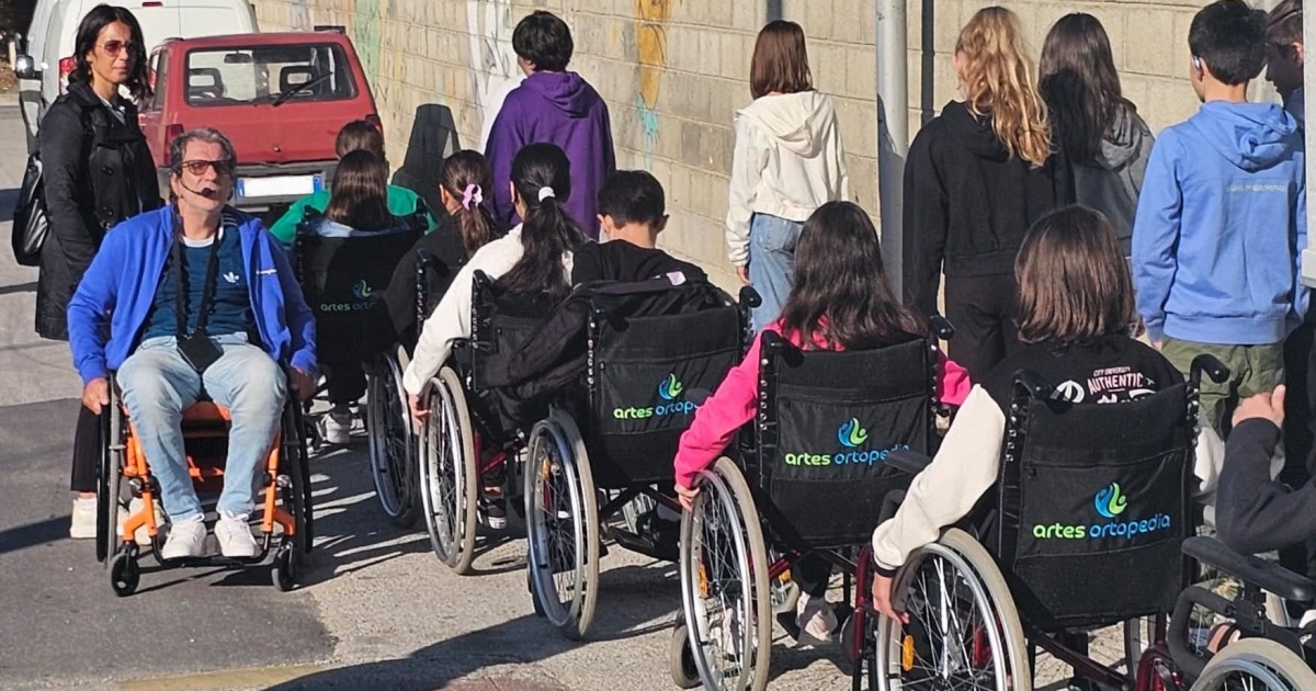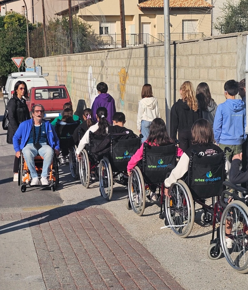 Tra i momenti più significativi, la passeggiata empatica: gli studenti hanno percorso le strade del paese per comprendere le barriere fisiche e culturali che molte persone affrontano quotidianamente. Questo progetto rappresenta un esempio virtuoso di collaborazione tra scuola, istituzioni e associazioni, con l’obiettivo comune di costruire una comunità consapevole e inclusiva.” A rendere ancora più speciale l’iniziativa, le testimonianze degli studenti che hanno preso parte al progetto: Benedetta, classe 1ª A: “È stata un’esperienza indimenticabile: nei panni di una persona in carrozzina mi sono resa conto che per strada ci sono molti pericoli. Mi sono sentita arrabbiata perché ho dovuto chiedere aiuto tante volte per oltrepassare le barriere architettoniche. Ho capito che le persone con disabilità non sono limitate dalla carrozzina, ma dalle barriere che trovano sul loro cammino. Claudio e Mariangela mi hanno aperto un mondo.” Pietro, classe 1ª C: “È stata un’esperienza molto profonda. Claudio è stato aperto con noi, ci ha raccontato la sua storia e ci ha insegnato che non dobbiamo fare capricci inutili, ma ricordarci sempre di essere felici. Ho capito che la disabilità è relativa: tutti siamo abili e disabili. La cosa importante è non giudicare e non avere pregiudizi. Mi ha stupito scoprire che le persone con disabilità possono fare cose straordinarie.” Gaia, classe 1ª B: “In questi giorni ho imparato a vedere il mondo da un’altra prospettiva. Ho capito cosa prova una persona che non riesce a fare le cose più semplici, come grattarsi o bere un bicchiere d’acqua. Claudio e Mariangela stanno portando avanti una missione davvero importante: grazie al contributo di tutti riusciremo ad abbattere le barriere fisiche e sociali. Il progetto “Sentinelle di Civiltà e di Felicità” continua così a radicarsi nelle scuole del territorio come modello educativo e civile, capace di unire scuole, famiglie, istituzioni attorno a un obiettivo comune: costruire un futuro in cui nessuno venga escluso. Ad affiancare Ferrante nella realizzazione di questo percorso anche quest’anno, il patrocinio dell’associazione Carrozzine determinate con i propri soci volontari e la collaborazione della ortopedia Artes di Montesilvano per la fornitura delle Carrozzine.