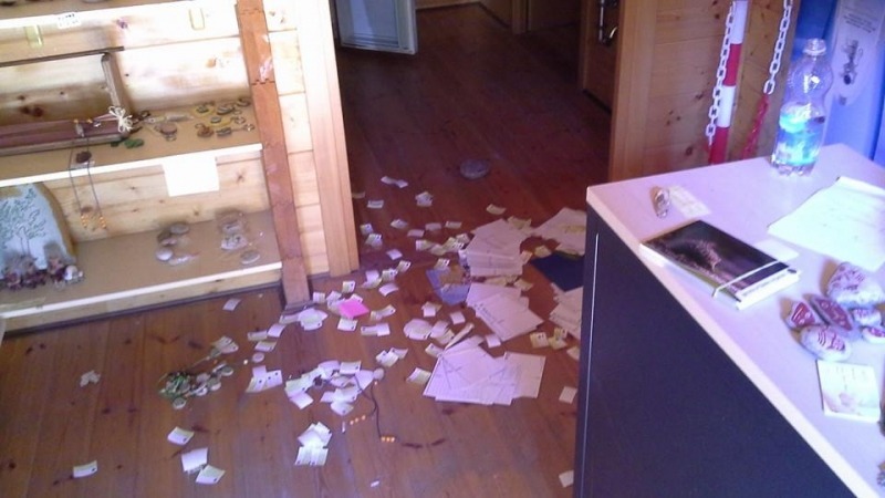 IL RACCONTO DI NICOLA RANALLI. "Ho trovato la sbarra di accesso al parcheggio aperta e il lucchetto forzato, la catena a terra e la porta d'ingresso aperta con il vetro rotto e la chiusura sventrata con il lucchetto ancora attaccato", racconta Nicola Ranalli, vice presidente della Cooperativa Terracoste, che gestisce la Riserva per conto del Comune di Torino di Sangro. "Dentro - prosegue - tutto il materiale informativo e i gadget erano per terra e ovunque c'erano vetri e monetine da 2 e 5 centesimi, la cassa, svuotata, era aperta e il cassetto vuoto a terra. E sulla scrivania un biglietto di ringraziamento".