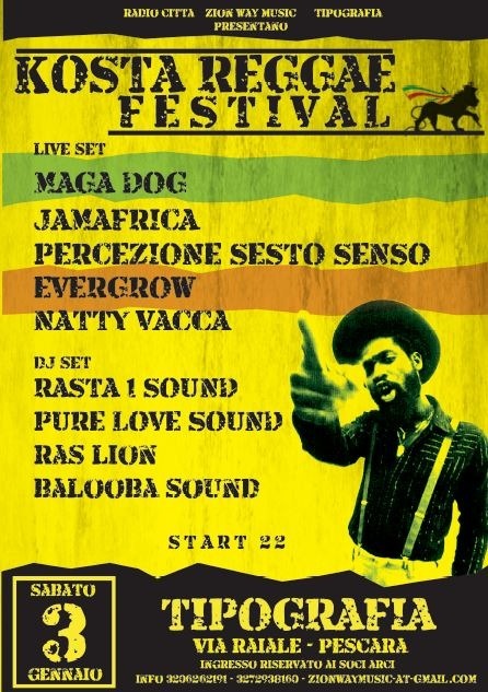 Sabato 3 gennaio al Tipografia c'è il KostaReggae Festival