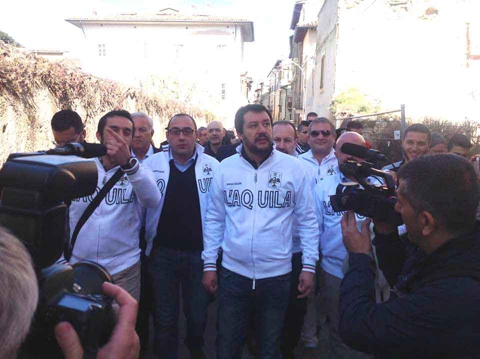 SALVINI A L'AQUILA. "Il Comune non è neanche lontanamente in grado di gestire una roba del genere. Inutile uscire dall'emergenza se non sei in grado di farlo".