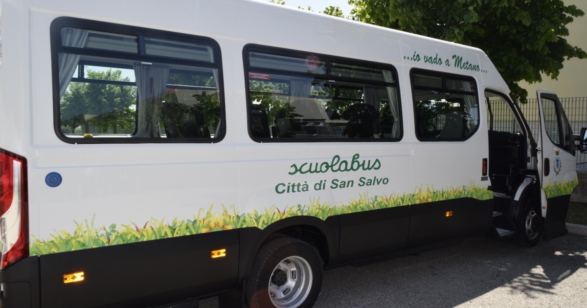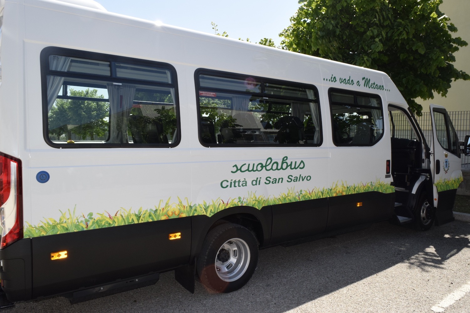 OTTIMA SCELTA DEL COMUNE DI SAN SALVO. Scelta ambientale del Comune di San Salvo nell'ammodernare il parco mezzi per il trasporto degli alunni delle scuole dell'infanzia e della primaria. Dopo aver acquistato nel 2015 le auto per la Polizia municipale alimentate a metano, la stessa soluzione è stata adottata per i due nuovi scuolabus, da questa settimana in servizio.