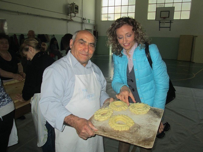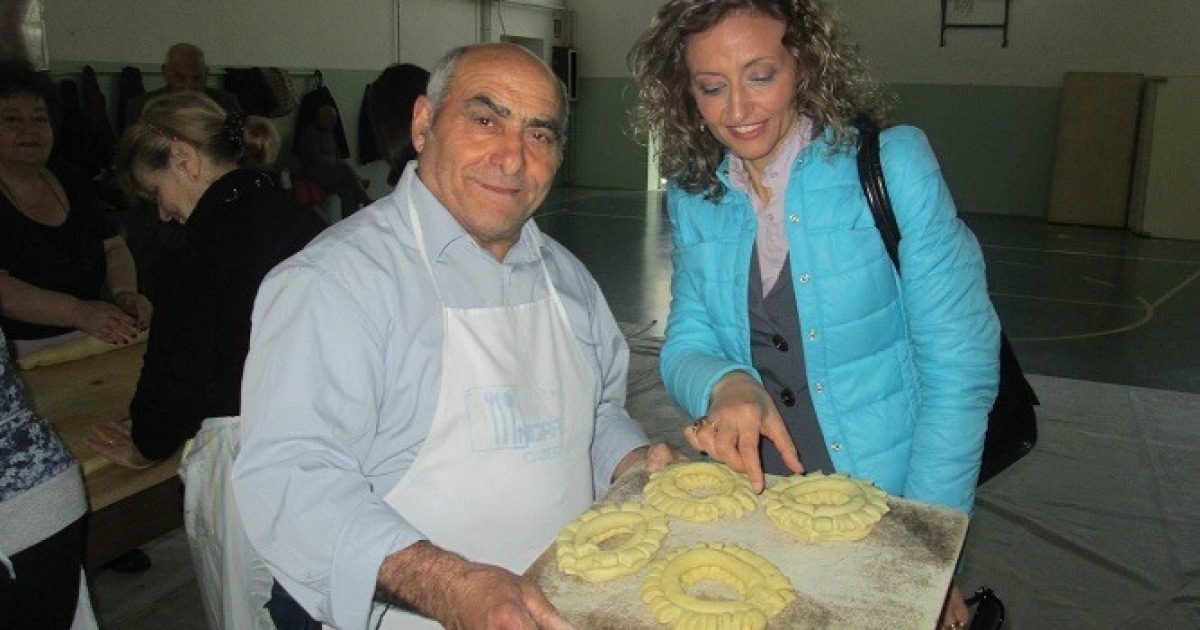 SAN SALVO: IL SINDACO PREPARA I TARALLI DELLA FESTA PATRONALE. Volontari al lavoro da questa mattina nella palestra della scuola elementare di via Verdi a San Salvo per la preparazione dei taralli di San Vitale. L’iniziativa è organizzata in occasione della festa del Patrono in programma il 27 e il 28 aprile. I “percellati”, taralli a forma di ruota dentellata saranno benedetti nel corso di una funzione religiosa e distribuiti a tutti i presenti. «La nostra comunità – ha detto il sindaco Tiziana Magnacca, giunta nella palestra per salutare i volontari- vive con grande partecipazione questi momenti devozionali, senza dimenticare la propria religiosità e le priorie tradizioni nel nome del nostro Santo Patrono. E’ emozionante e coinvolgente ascoltare le voci delle donne e degli uomini che accompagnano anche con i canti il lavoro di preparazione dei taralli che poi saranno distribuiti nei giorni delle feste patronali. Abbiamo il dovere di conservare e preservare queste tradizioni».