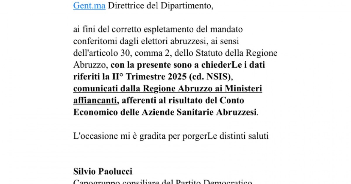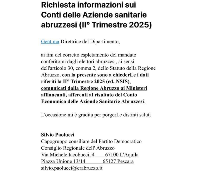 Sono due le richieste di accesso agli attI per verificare la situazione debitoria del comparto sanitario pubblico abruzzese
