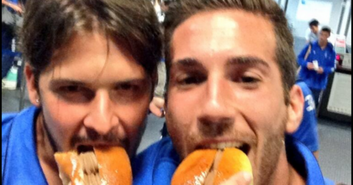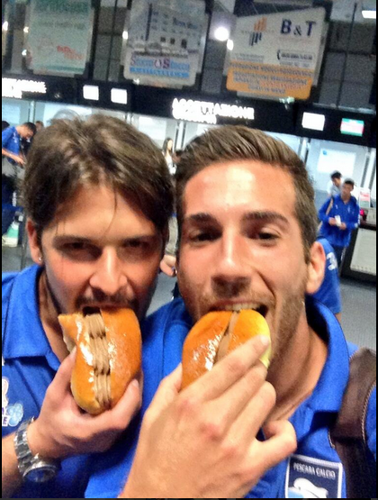 In foto: Filippo Maniero e Ragusa mentre mangiano un maritozzo.