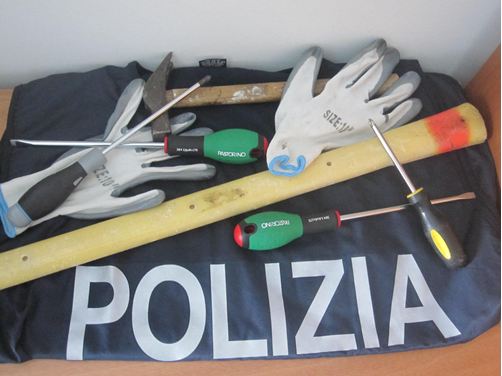 PRESI COI FERRI DEL MESTIERE. Ieri notte i due sono stati intercettati a Celano, a bordo di una autovettura bmw di grossa cilindrata e trovati, in possesso di arnesi atto allo scasso e denunciati ex art. 707 del codice penale; nell’auto sottoposta a perquisizione, sono stati rinvenuti 4 guanti, 4 grossi cacciaviti, 1 martello ed 1 ascia. Svariati i pregiudizi di polizia, peraltro specifici in materia di reati contro il patrimonio degli stranieri: furti e tentati furti aggravati; inosservanza alle norme sugli stranieri. Ad uno dei due stranieri venivano pure sequestrati passaporto, carta d’identità e patente di guida, tutti rilasciati dalle autorità albanesi, visto che all’atto del controllo di polizia esibiva un passaporto con diversa data e luogo di nascita rispetto agli altri due documenti.