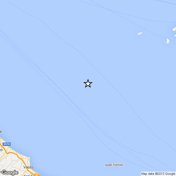 L'ultimo movimento tellurico, con coordinate geografiche (lat, lon) 42.65, 15.26 ad una profondità di 25 km, è stato localizzato al largo delle coste vastesi ovvero in zona piattaforme petrolifere. Ricordiamo che nel 2013 ci fu un significativo sversamento in mare di oleosi idrocarburi proveniente dal campo di estrazione 'Rospo di Mare'.