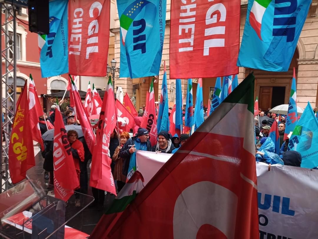 Anche in Abruzzo c’è stata una poca partecipazione per lo sciopero generale proclamato dalla Cgil e la Uil con presidi e manifestazioni. Le sigle sindacali parlano di 6mila persone, nel resto del Paese le cifre non hanno raggiunto i sei zeri e, forse, data la situazione che stiamo vivendo, ci si aspettava qualcosa in più. La Cisl non ha aderito ritenendo l’astensione alla giornata di lavoro un’espressione politica contro il governo Meloni. Uno di questi si è tenuto a Pescara dinanzi alla Prefettura dove si sono ritrovate alcune centinaia di persone che hanno manifestato pacificamente con striscioni e bandiere. “Oggi manifestiamo per dire no ad una manovra finanziaria – ha spiegato Massimo Longaretti della Uil Abruzzo – completamente iniqua che va a colpire i ceti più deboli e le lavoratrici soprattutto, ma anche i lavoratori e poi i pensionati che con un aumento di tre euro lordi non possono come non potevano prima di curarsi nemmeno. Noi a questa manovra diciamo no ma siamo disponibili a qualsiasi confronto per trovare le soluzioni migliori. Avevamo dato un’apertura e chiesto di tassare gli extra profitti e colpire gli evasori fiscali ma questo il Governo non lo ha fatto per cui chiediamo oggi al Parlamento delle modifiche sostanziali a questa manovra finanziaria”. Il segretario della Cgil di Pescara Luca Ondifero ha aggiunto che “diciamo no ad una manovra che non va incontro alle necessità dei lavoratori e dei pensionati e dei giovani e oggi c’è questo sciopero che riguarda tutti i settori. I lavoratori non hanno risposte di fronte alla precarietà diffusa, con il salario che non è adeguato all’inflazione e quindi siamo qui per manifestare il nostro dissenso affinché questa manovra sia cambiata visto che oggi non si riescono a dare risposte per esempio anche sulla sanità, con le liste di attesa troppo lunghe e con la mancanza di personale e di investimenti”.