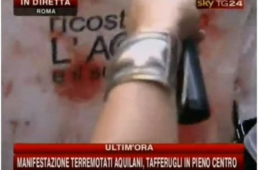 Le immagini di videosorveglianza immortalarono scontri tra le forze dell'ordine ed un gruppo di manifestanti, giustamente, indignati per l'inerzia dello Stato di fronte al dramma che aveva colpito l'Abruzzo.