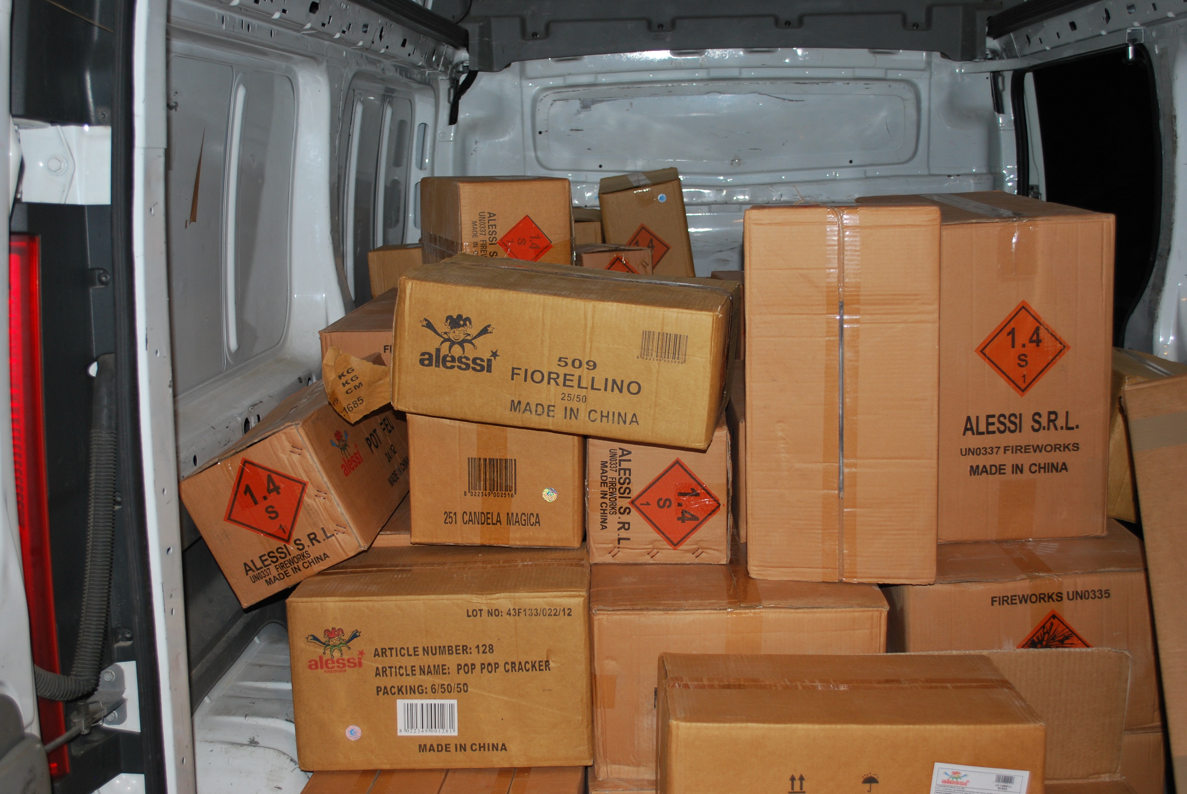 SCOPERTA UNA FABBRICA DI BOTTI ILLEGALI. Il personale della divisione polizia amministrativa della questura di Pescara, in collaborazione con il nucleo artificeri, ha scoperto un traffico di fuochi d'artificio illegali. Era da tempo che gli investigatori seguivano un rappresentante di Villamagna (Ch), ritenuto il grossista dei tanti chioschi presenti sul territorio delle province di Chieti e Pescara. Dentro il furgone l'uomo trasportava, senza licenza nè cautele alcune, circa 7,60 quintali di materiale esplodente di IV e V categoria (del tipo “venti di guerra”, “ tunder”, “batteria mille colpi” etc.) per un valore di circa 18.000 euro.