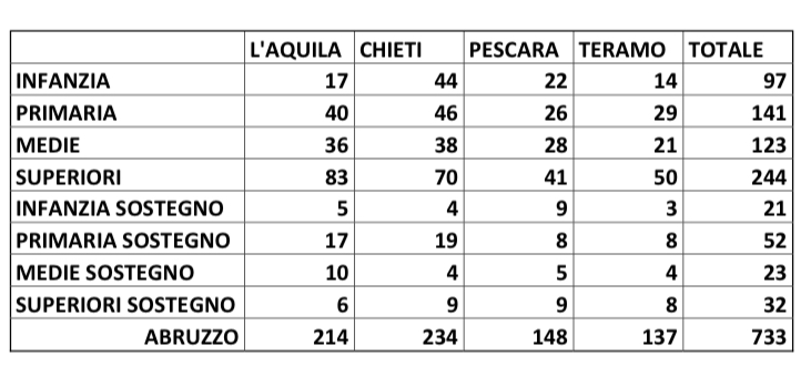 A partire da lunedì verranno avviate tutte le operazioni di assunzione a tempo indeterminato di 733 docenti nelle scuole abruzzesi e dovrebbero concludersi entro la metà di agosto.