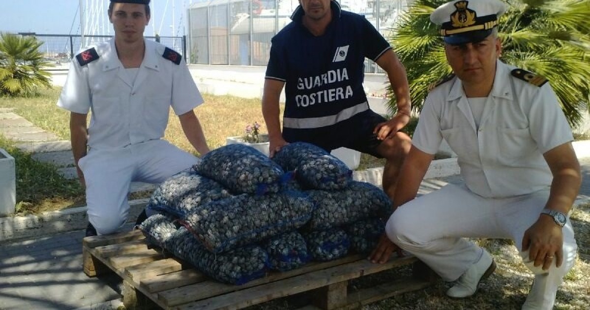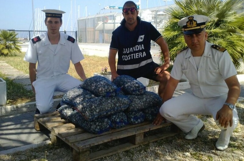 CONTROLLI A TAPPETO LUNGO TUTTA LA FILIERA DELLA PESCA. Sequestrati 170 chili di vongole della specie venus gallina al termine di una mazi operazione della Guardia Costiera di contraso alle illegalità nel settore ittico.