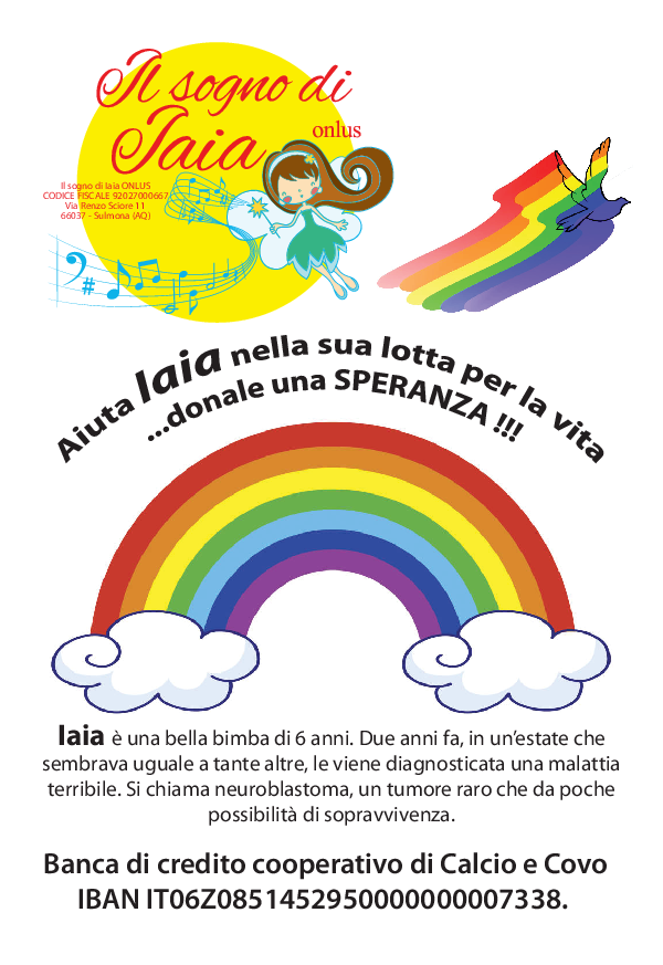 I genitori e i parenti hanno fatto la loro parte ma non basta. Serve che tutti diano una mano attraverso un’offerta, anche piccola, alla onlus che è stata fondata proprio per questo scopo e che ha nel titolo il suo programma: “Il sogno di Iaia”.