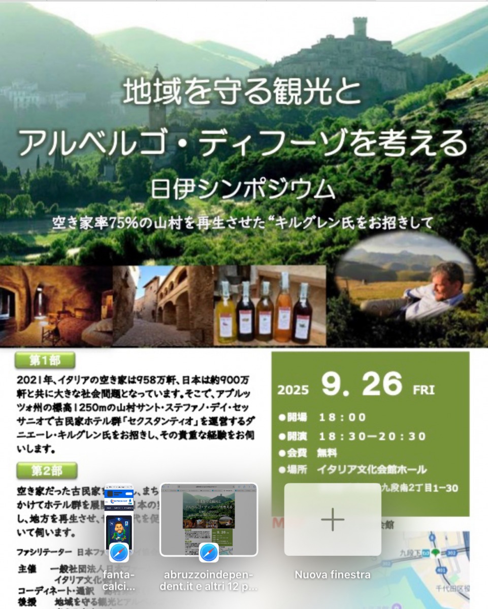 In Giappone cresce l’attenzione per un turismo più qualificato e consapevole, che cerca un’Italia autentica, lontana dal turismo di massa. L’esperienza di Santo Stefano di Sessanio, divenuta un caso internazionale, sarà presentata come esempio di sviluppo sostenibile e identitario.