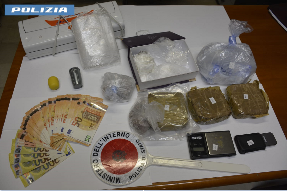 All’esito della perquisizione personale e domiciliare sono stati rinvenuti complessivi circa 2 kg di eroina, circa mezzo chilo di cocaina e 78 grammi di hashish.