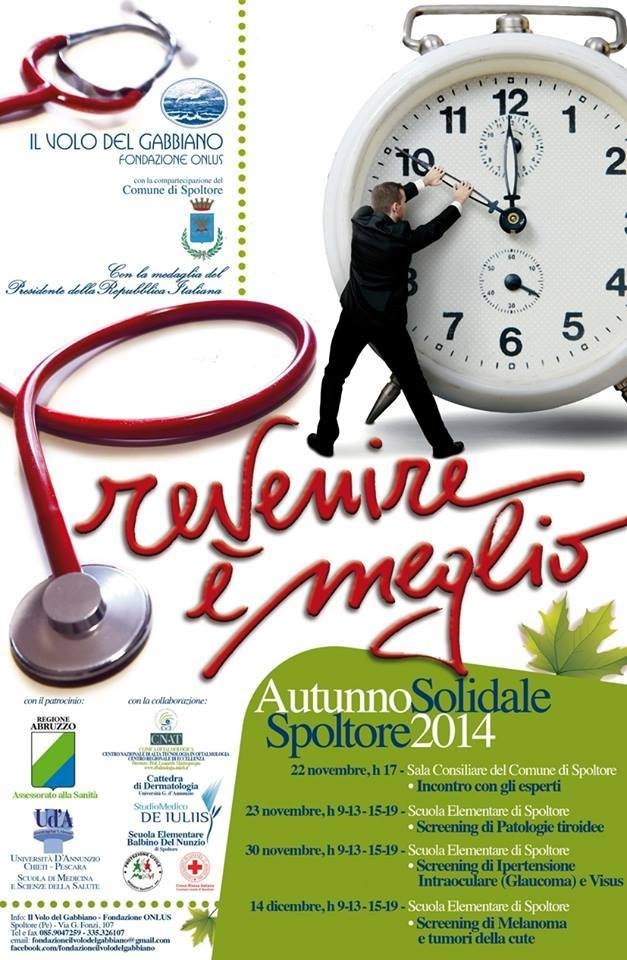 A Spoltore torna l'appuntamento con la salute "Prevenire è meglio...!", un'iniziativa di Spoltore Solidale per consentire ai cittadini spoltoresi di entrare in contatto con gli esperti di diverse patologie largamente diffuse nella popolazione.