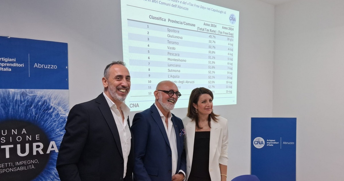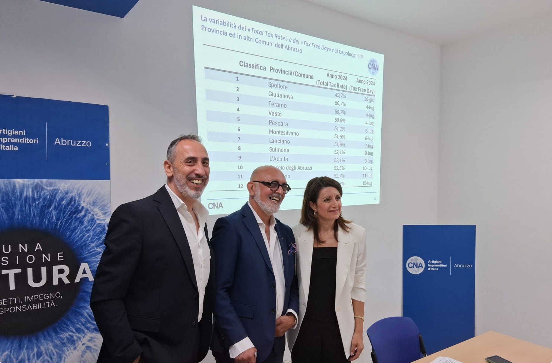 Fino a che giorno dell’anno un imprenditore lavora per pagare tasse e tributi nei maggiori comuni abruzzesi? Da quando inizia a produrremreddito per sé, festeggiando la sua personale festa di liberazione, il “tax free day”? E a quanto ammonta complessivamente il carico fiscale che grava sulle sue spalle? Sono alcune delle domande cui dà risposte lo studio realizzato dalla CNA Nazionale, “Comune che vai, fisco che trovi” presentato questa mattina alla stampa a Pescara alla presenza del Responsabile dell’Area fiscale nazionale, Claudio Carpentieri, e del direttore regionale della CNA Abruzzo, Silvio Calice.