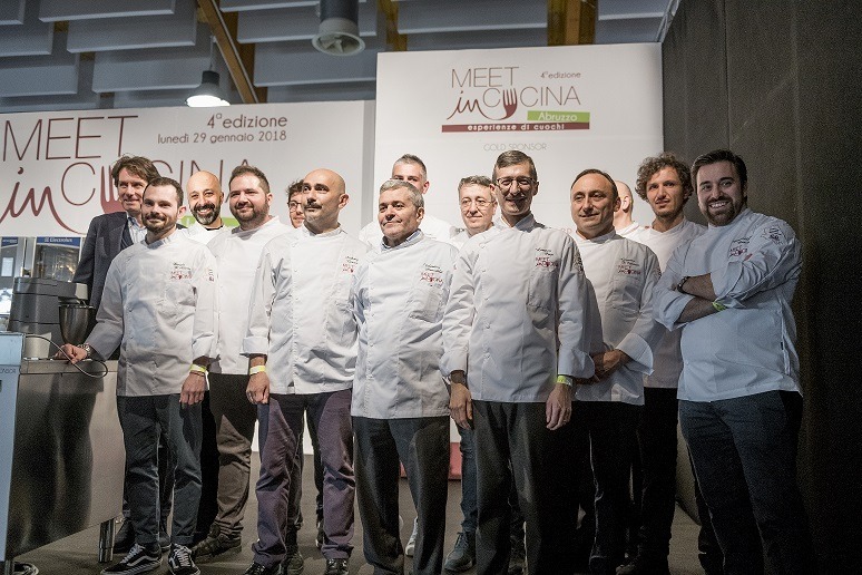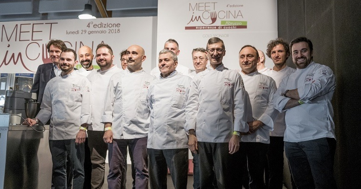 NUMERI RECORD PER IL MEET IN CUCINA 20018. Si è chiusa con un record di oltre 600 presenze la quarta edizione di Meet in Cucina Abruzzo, il congresso dei cuochi abruzzesi che si è svolta lunedì 29 gennaio 2018 nel Centro Espositivo della Camera di Commercio di Chieti. Ideato dal giornalista Massimo Di Cintio e promosso in collaborazione con Andrea Di Felice e Lorenzo Pace, rispettivamente presidente e segretario dell’Unione Cuochi Abruzzesi, Meet in Cucina 2018 è stato organizzato in compartecipazione con la Camera di Commercio di Chieti-Pescara, con il supporto di sponsor privati come Electrolux (main sponsor) e De Cecco (gold sponsor) e partner come Acqua Panna-S. Pellegrino, Pentole Agnelli, Bragard, Autoepi, Agapè Forniture e Rcr Cristalleria Italiana. Meet in Cucina ha avuto il patrocinio della Federazione Italiana Cuochi, del Comune di Chieti e dell’assessorato alle Politiche Agricole della Regione Abruzzo, delle associazioni Slow Food Abruzzo e Qualità Abruzzo e ha potuto contare sulla partecipazione dell’Istituto alberghiero “Di PoppaRozzi” di Teramo e del sodalizio Lady Chef Abruzzo per la gestione di alcuni servizi. Ancora una volta si è dimostrata vincente la formula di Meet in Cucina che, grazie alla sua impostazione formativa e informativa, ha saputo intercettare l’esigenza dei cuochi abruzzesi di avere un momento di incontro e di confronto delle conoscenze e delle esperienze. Meet in Cucina Abruzzo è stata dunque l’occasione per accendere i riflettori sulla cucina regionale e sui prodotti agroalimentari, anche grazie alla presenza di 15 giornalisti delle principali testate nazionali.